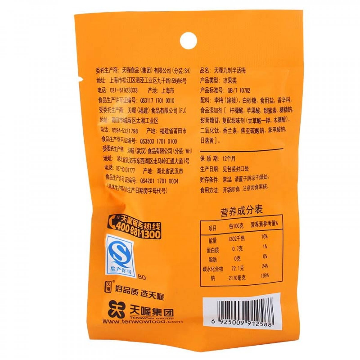 商品名称:天喔 天喔主意 九制半话梅 50g