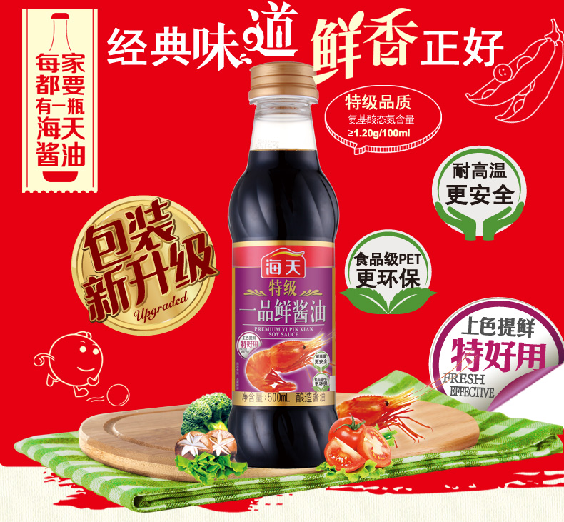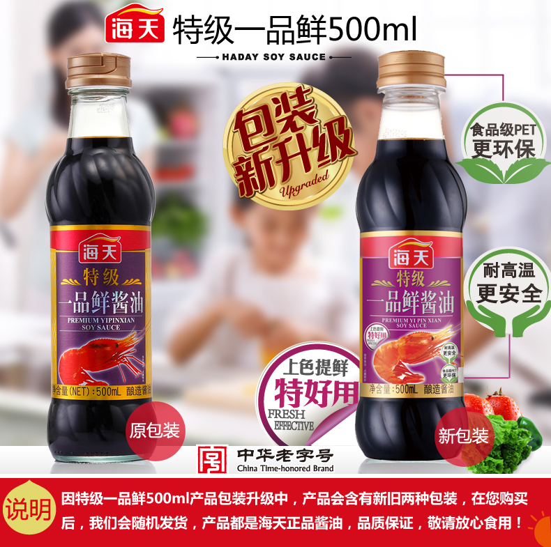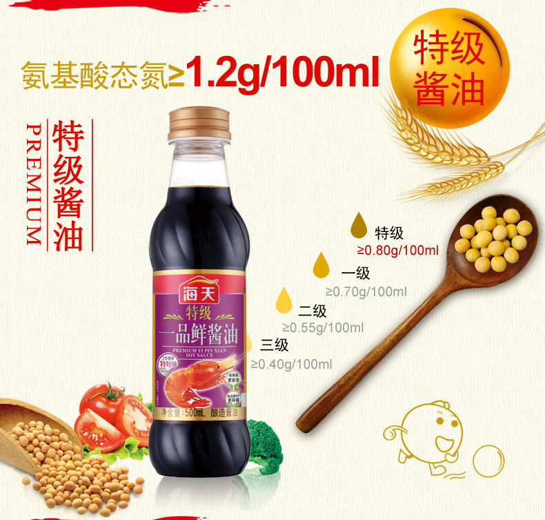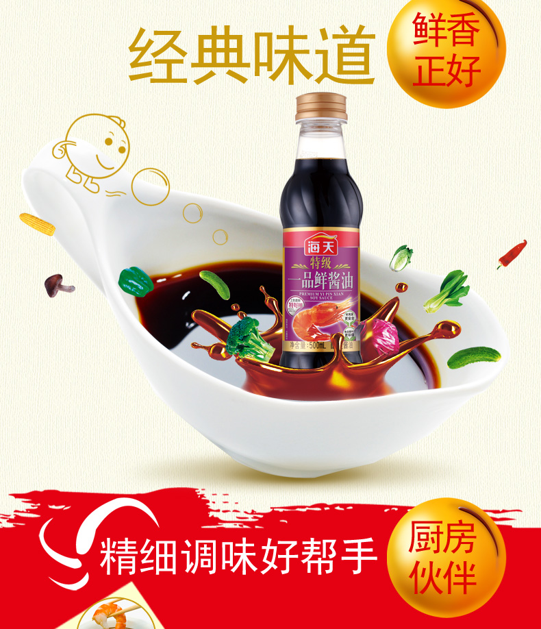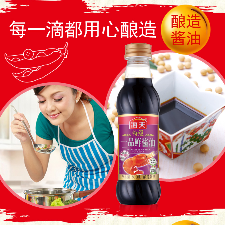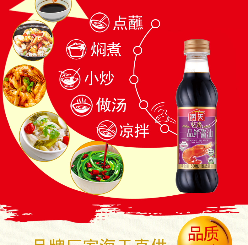 商品名称:海天 特级一品鲜酱油500ml 品质生抽 凉拌炒菜海鲜调料