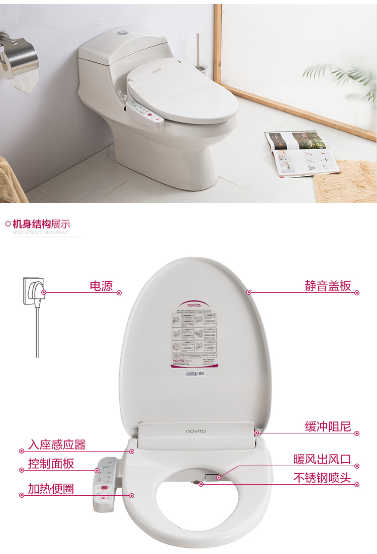 商品名称:诺维达 智能马桶盖 科勒旗下即热式进口洁身器坐便盖板长款(即热带暖风) BD-K350T