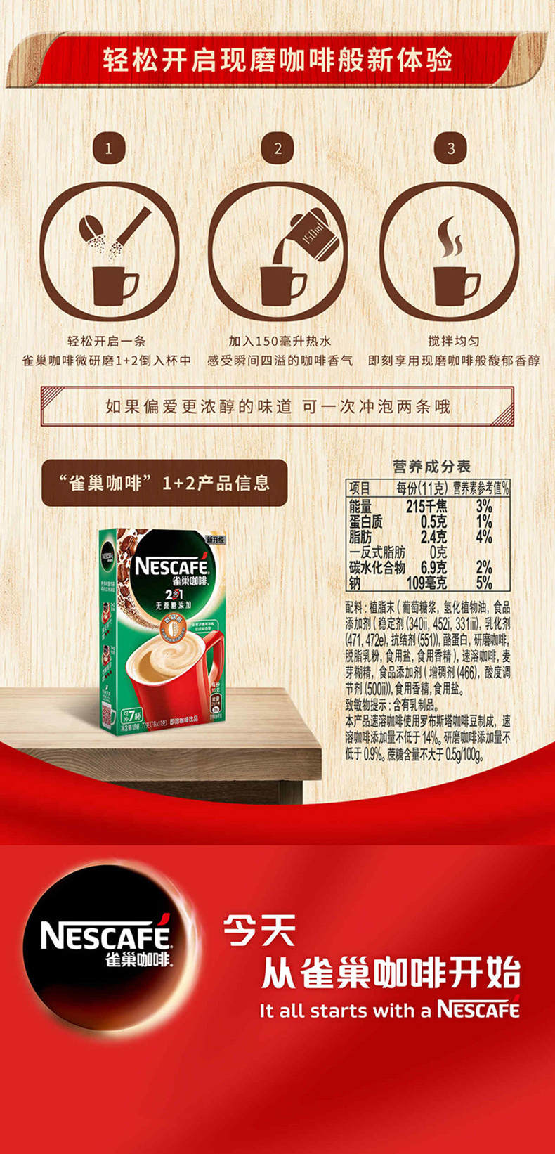 商品名称:雀巢 咖啡1+2 微研磨无蔗糖7条