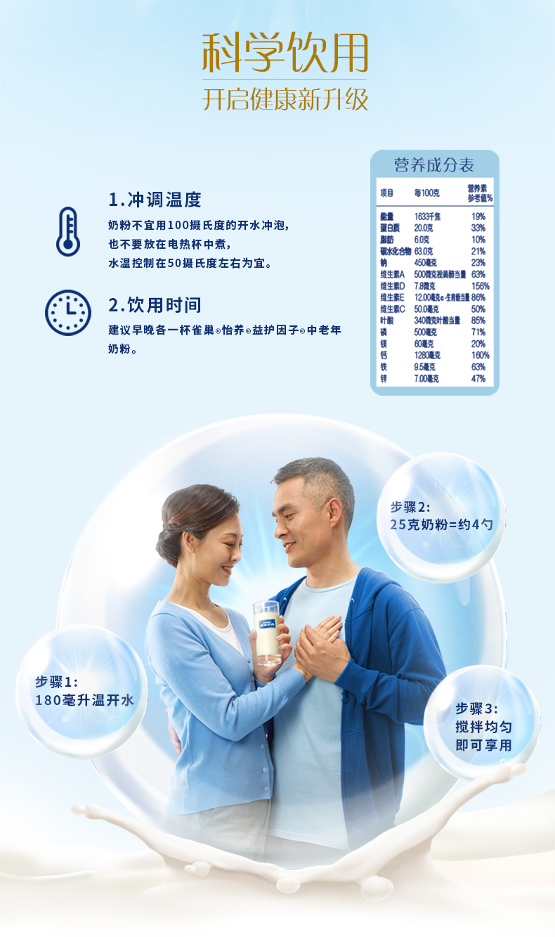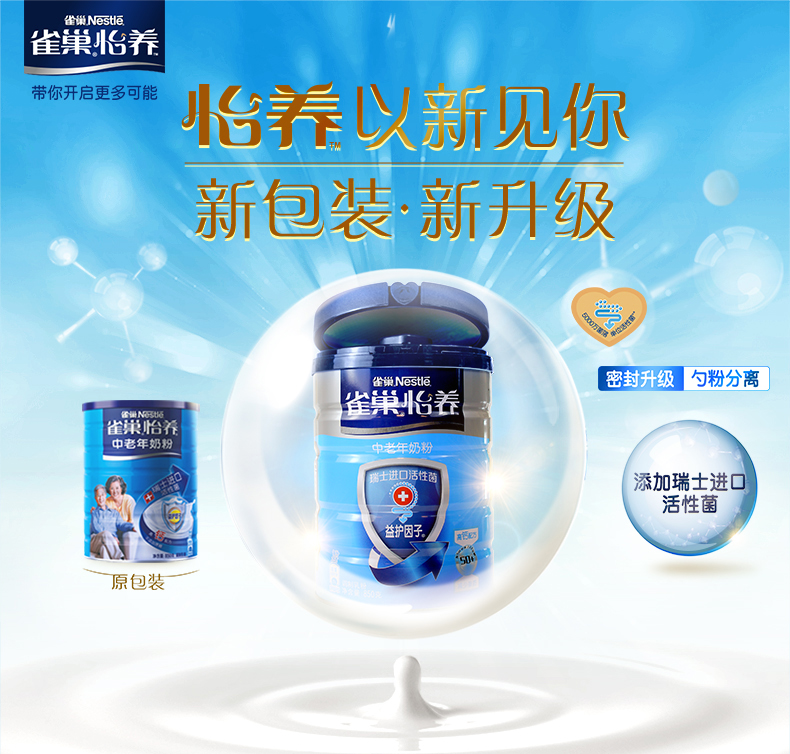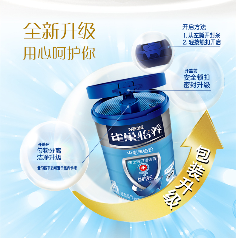 商品名称:雀巢 成人奶粉 罐装 怡养中老年高钙配方奶粉 850g(新旧包装随机发放)