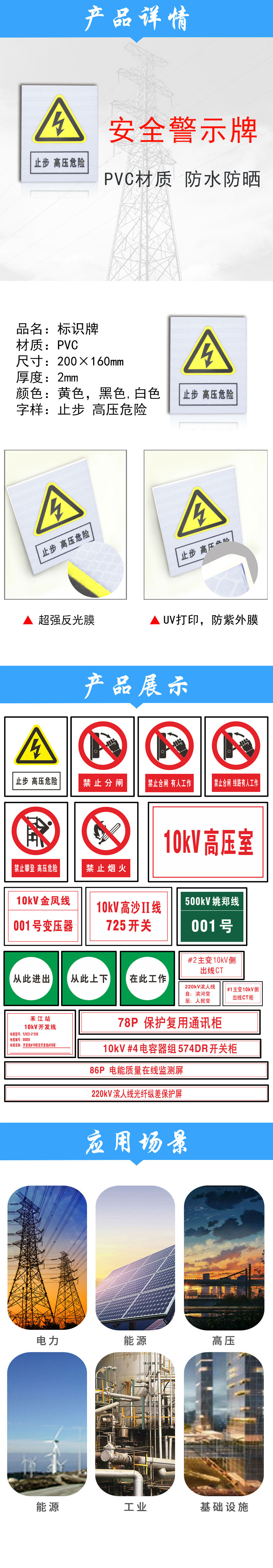 商品名称:和讯自有产品 标识牌 PVC 200×160mm安全标示牌 白底黑色三角形 止步 高压危险 字样黑色