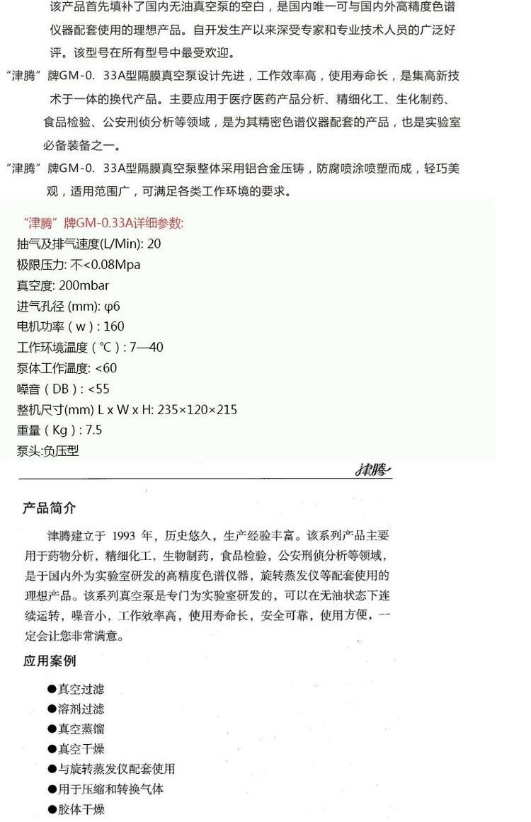 商品名称:实验室用津腾隔膜无油真空泵 津腾GM-0.33A抽滤过滤装置真空泵