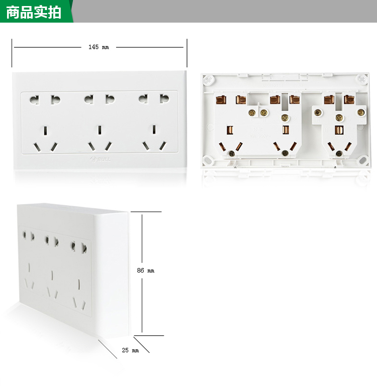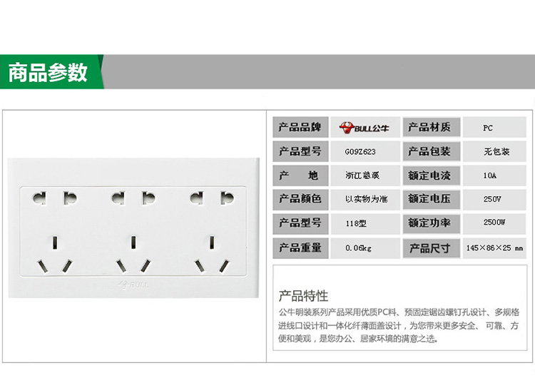 商品名称:公牛 G09系列 建筑装饰 明装开关插座 15孔插座面板 白色 G09Z623