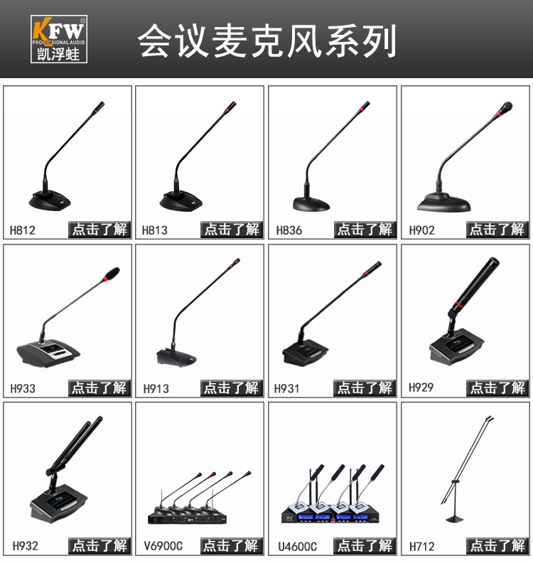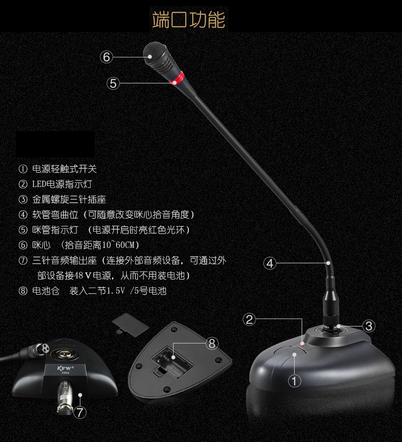 商品名称:★ 凯浮蛙/KFW H902 专业会议麦克风鹅颈桌面话筒有线电容麦电脑话筒