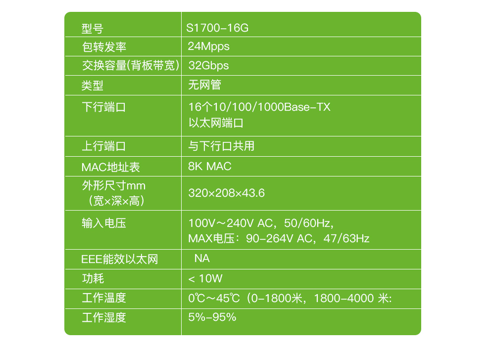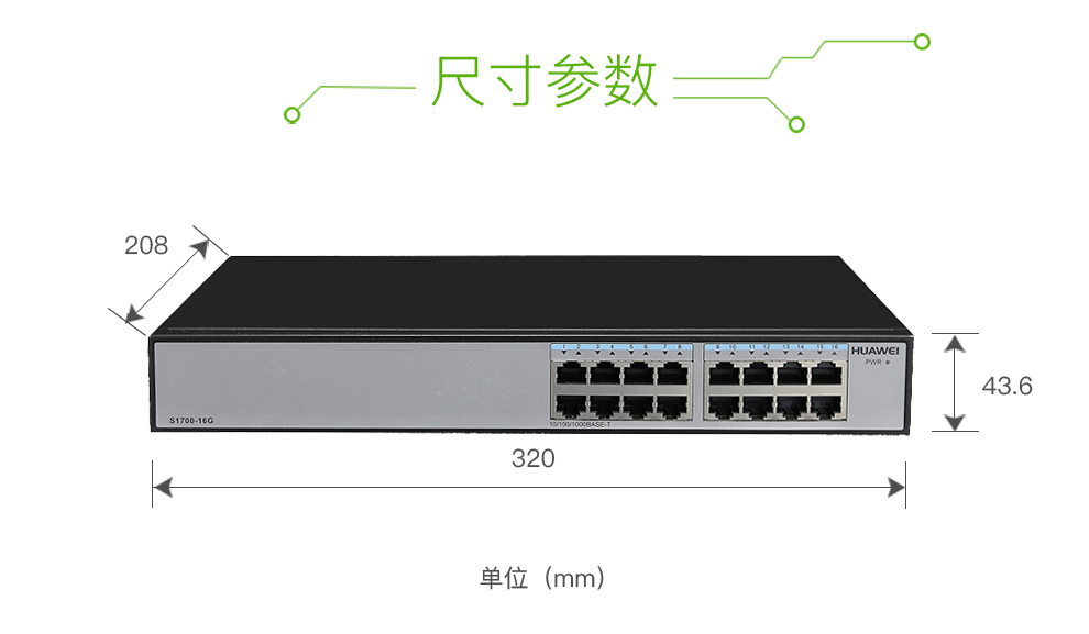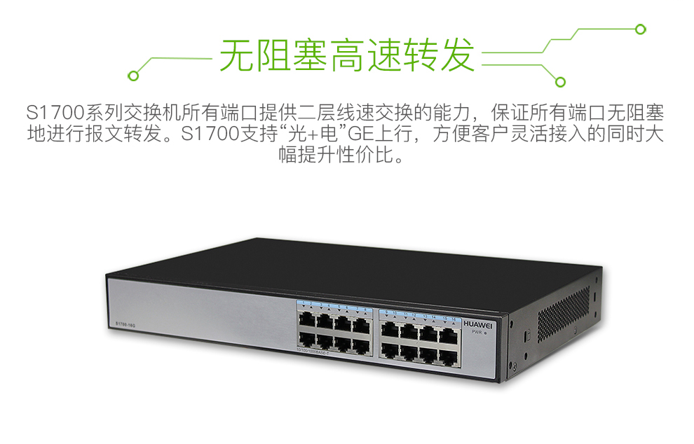 ★ 华为/Huawei S1700-16G 机架式非网管交换机 16个10/100/1000Base-T以太网电接口