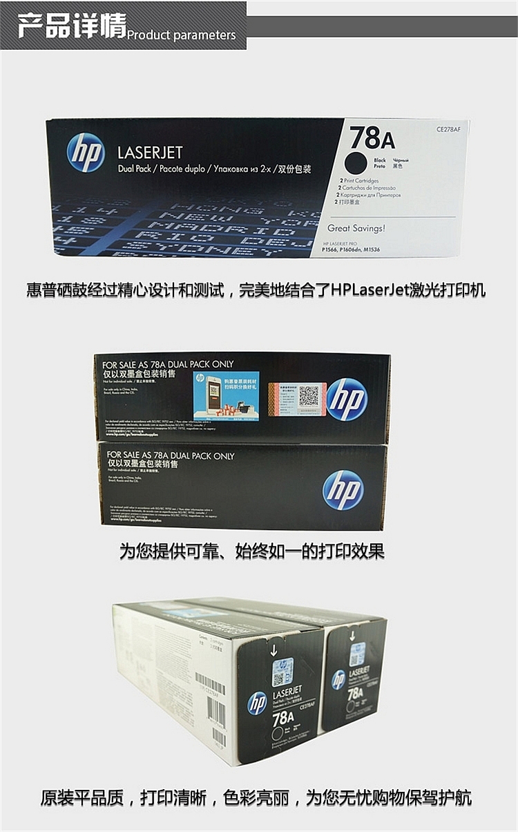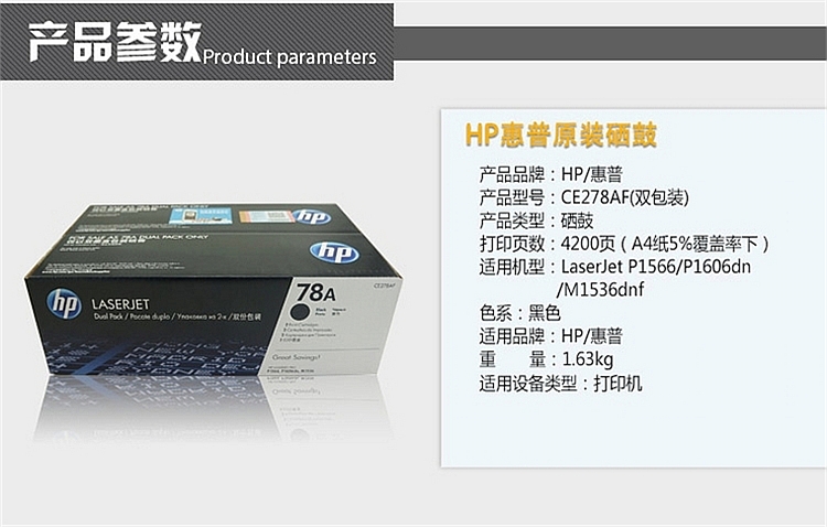 商品名称:★ HP/惠普 78A(CE278AF) 硒鼓 适用机型 激光打印机:HPP1566 P1606dn 打印页数 2100