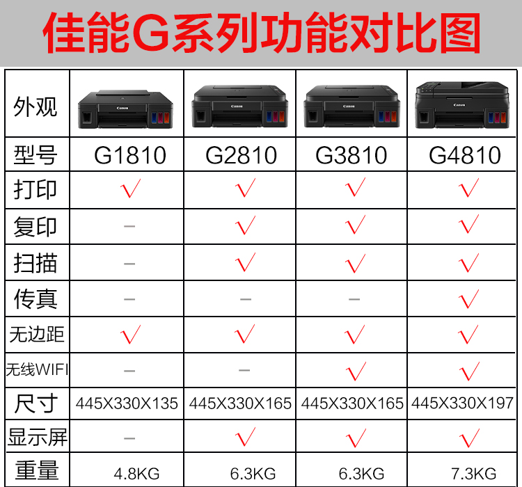 商品名称:★ 佳能/Canon 墨仓式彩色喷墨一体机 G2810
