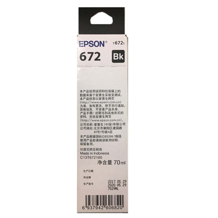 商品名称:★爱普生/Epson 黑色 打印机墨水 T6721