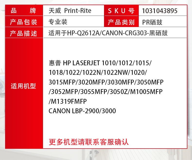 商品名称:★ 天威 硒鼓适用于HP-Q2612A/CAN-CRG303/FX9-黑硒鼓-新版