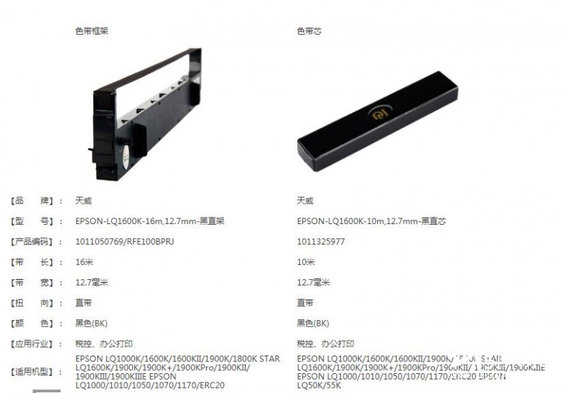 商品名称:★天威 1600/300 适用爱普生打印机色带芯 EPSON-LQ1600K/LQ300K+II/LQ1000/1010/1050/1070/1170/ERC20 STAR LQ1600K/1900K 黑色