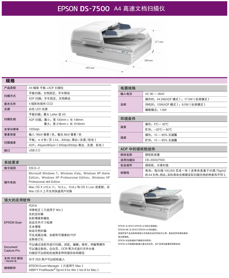 型号:爱普生(Epson) DS-7500