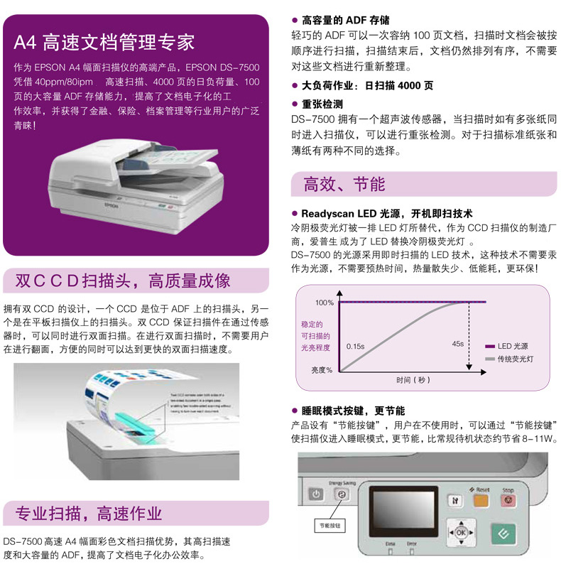 商品名称:★爱普生/Epson 平板+馈纸式文档高速扫描仪 白色 DS-7500
