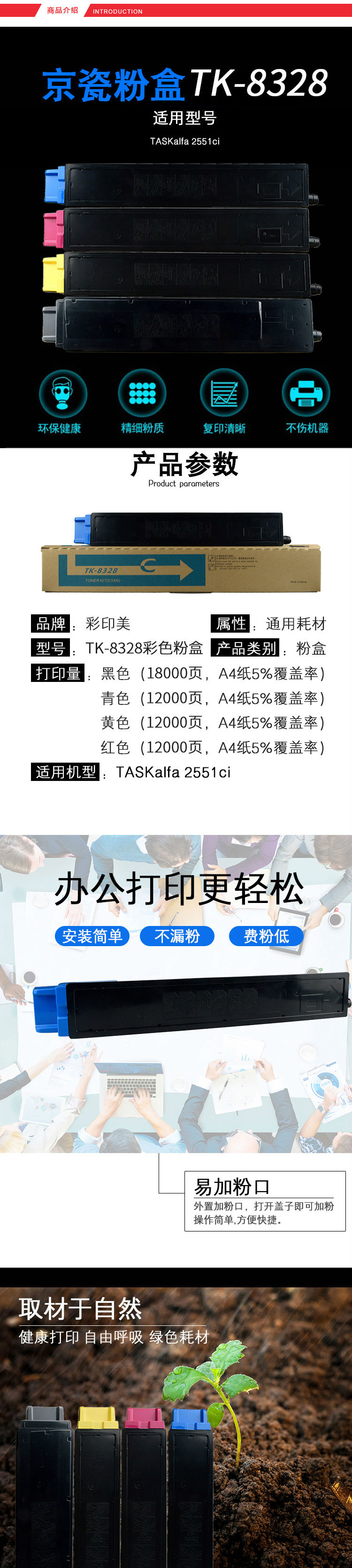 商品名称:★ 京瓷/Kyocera TK-8328C 墨粉 青色 打印量约12000页 适用机型:京瓷2551ci(计价单位:支)