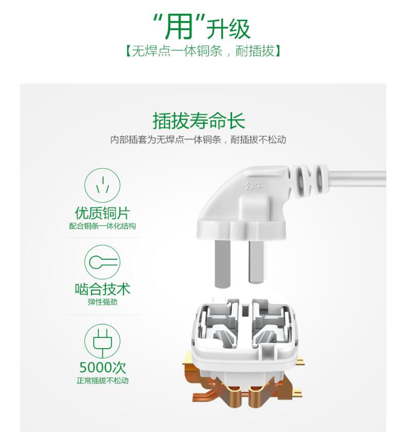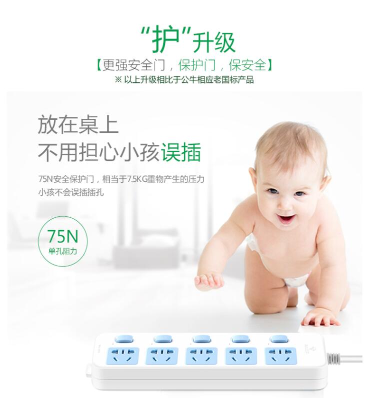 商品名称:公牛 TSD 带独立开关插座5插孔5接线板 1.8米拖线板GN-316/个 白色