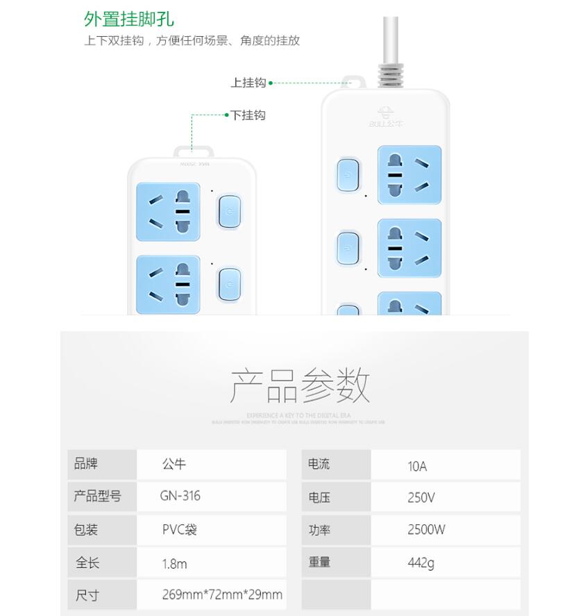 公牛-GN-217-插排-8位总控-3米-单位:个