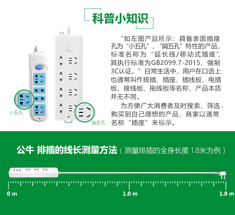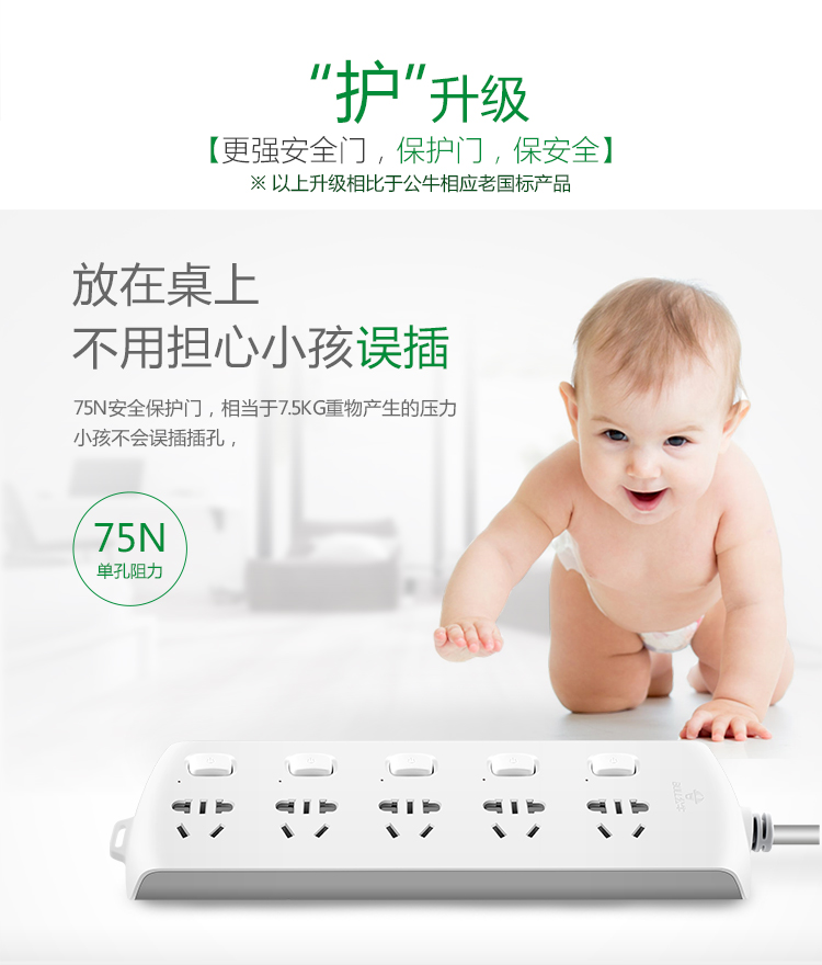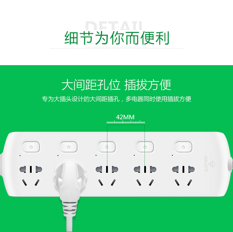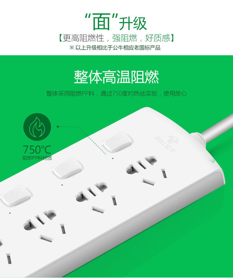 商品名称:公牛 新国标分控插座/插线板/插排/排插/接线板/拖线板 5位分控全长1.8米 独立开关 GN-B2053