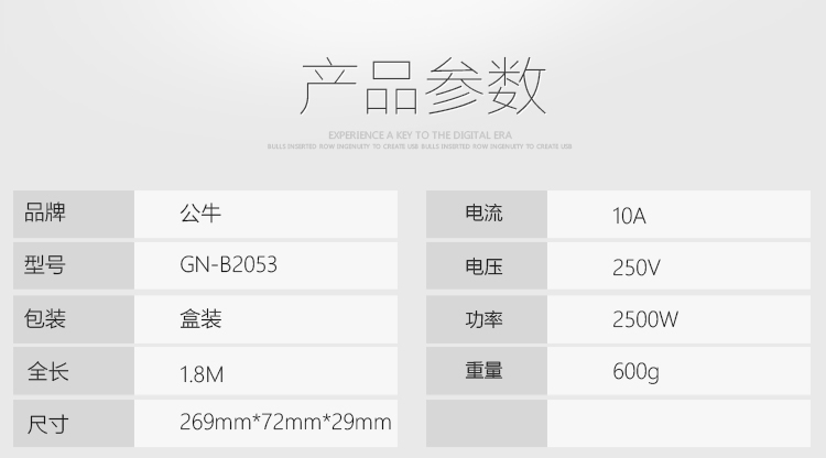 公牛-GN-217-插排-8位总控-3米-单位:个
