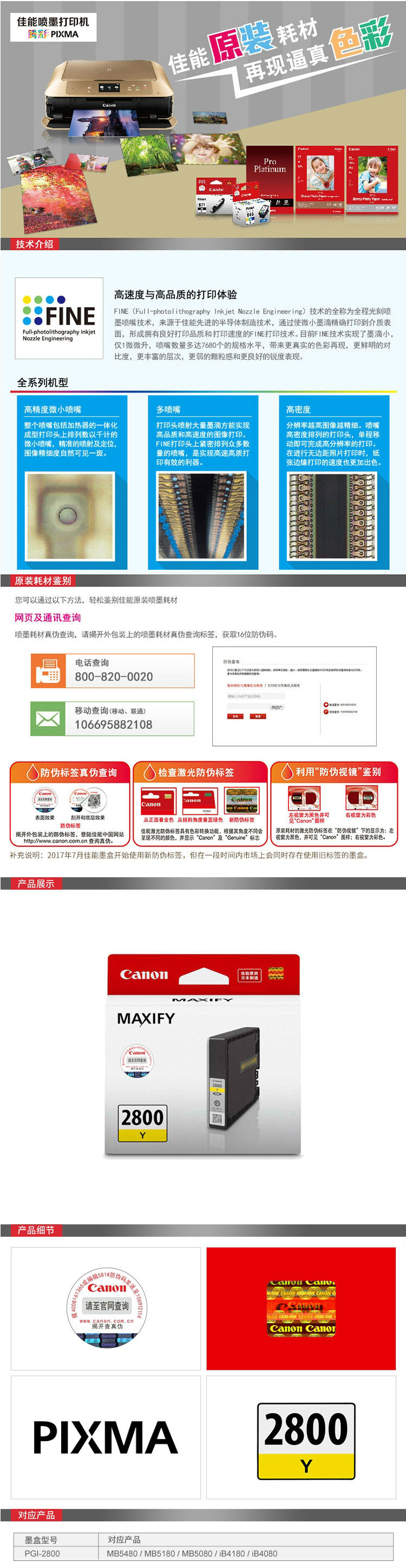 商品名称:★ 佳能/Canon PGI-2800Y 黄色 标容墨盒