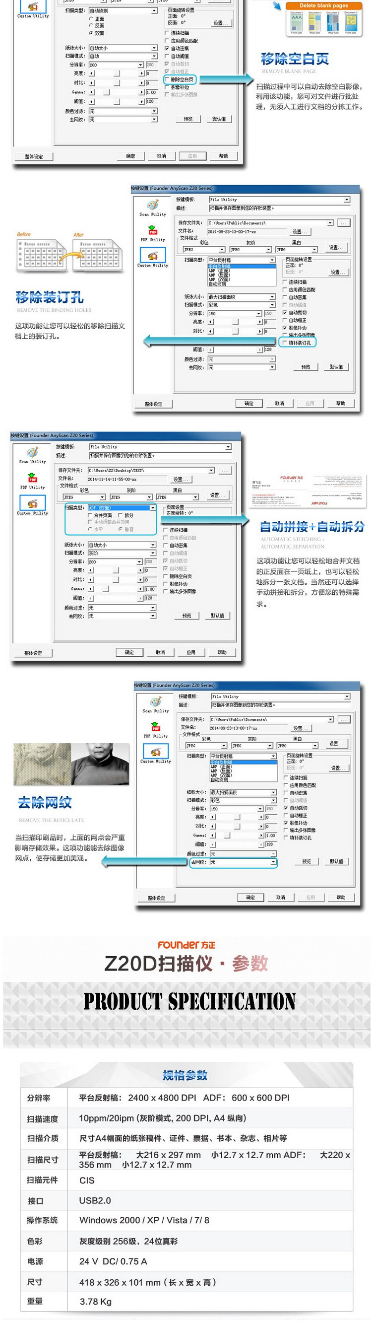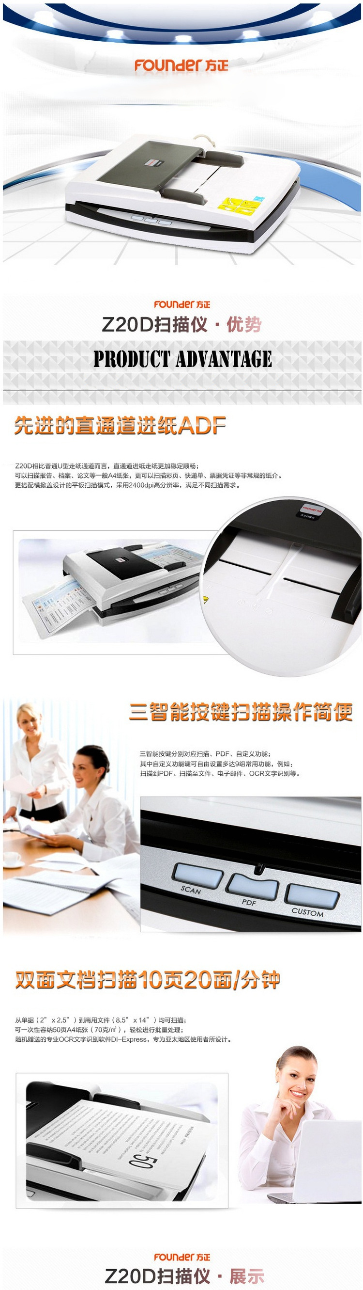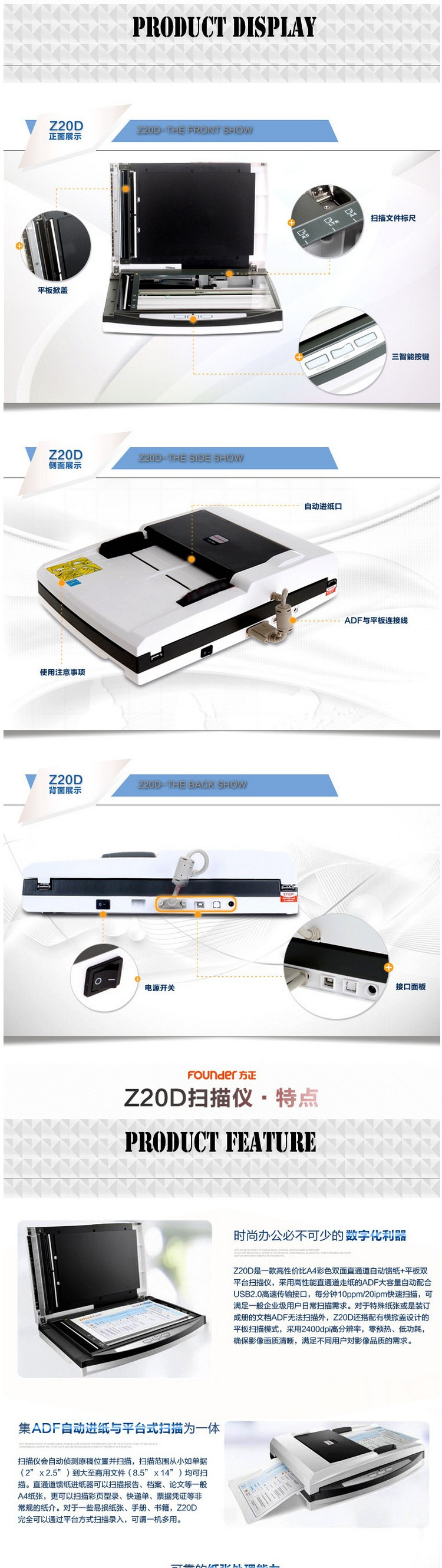 商品名称:★Founder/方正 平板+馈纸式扫描仪 Z20D