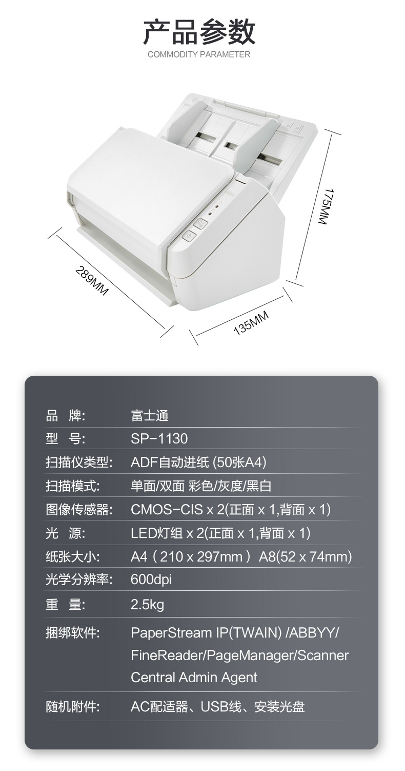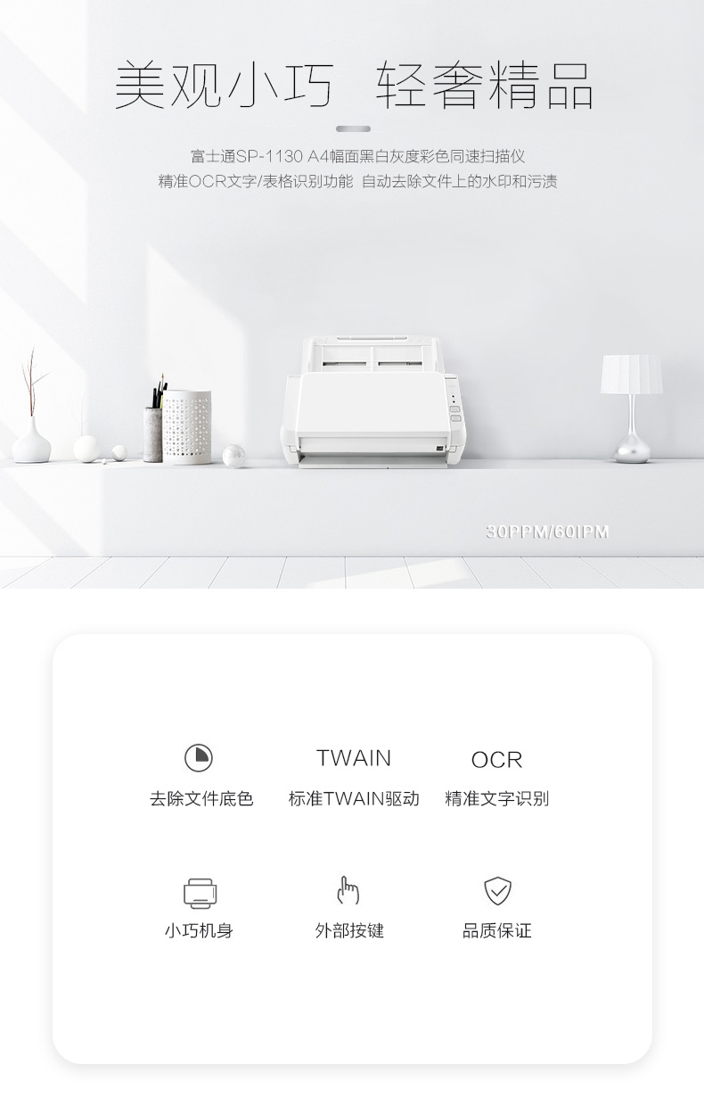 商品名称:★ 富士施乐/FujiXerox SP-1130 扫描仪 A4幅面 速度30ppm/60ipm 色彩24位
