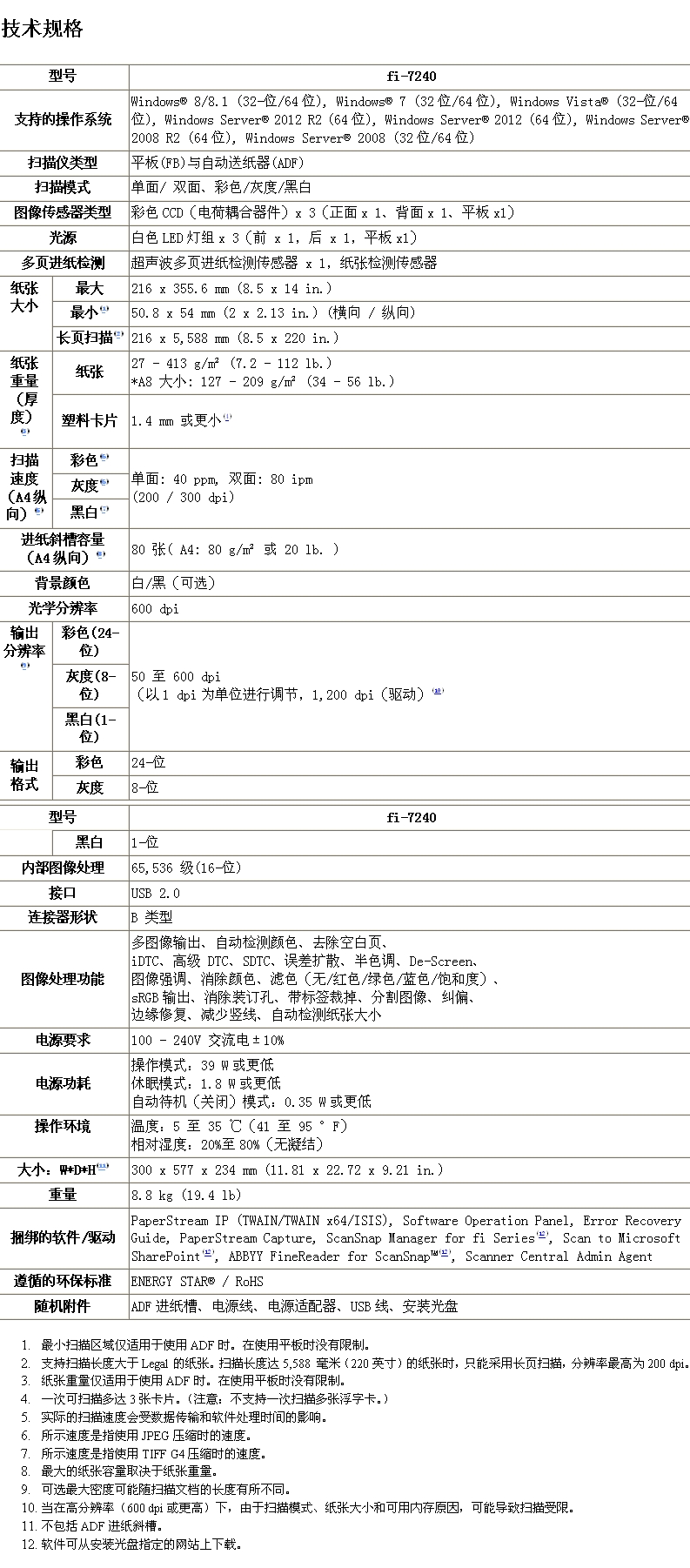 商品名称:★ 富士通/Fujitsu Fi-7240 高速扫描仪 A4幅面 速度40ppm/80ipm 色彩24位