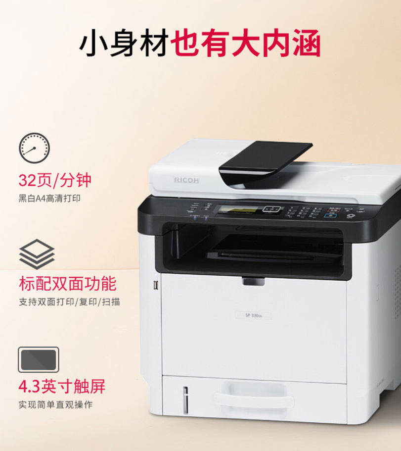 商品名称:★理光/Ricoh SP 330SFN 黑白激光多功能一体机