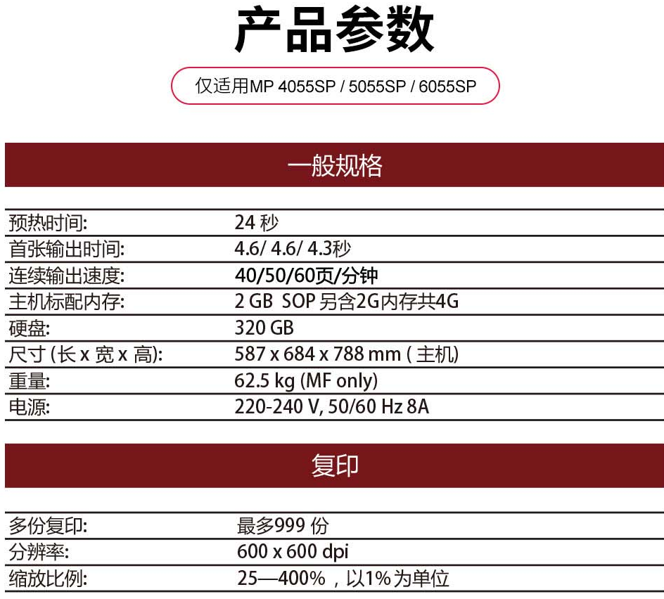 商品名称:★理光/Ricoh A3理光黑白数码复合机MP 6055SP(标配)