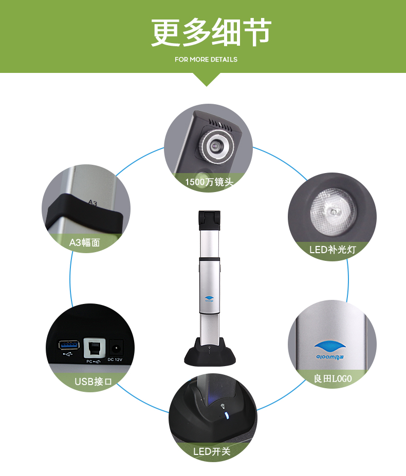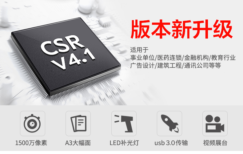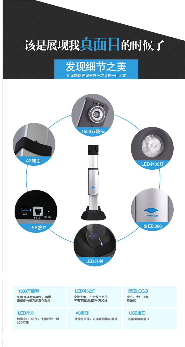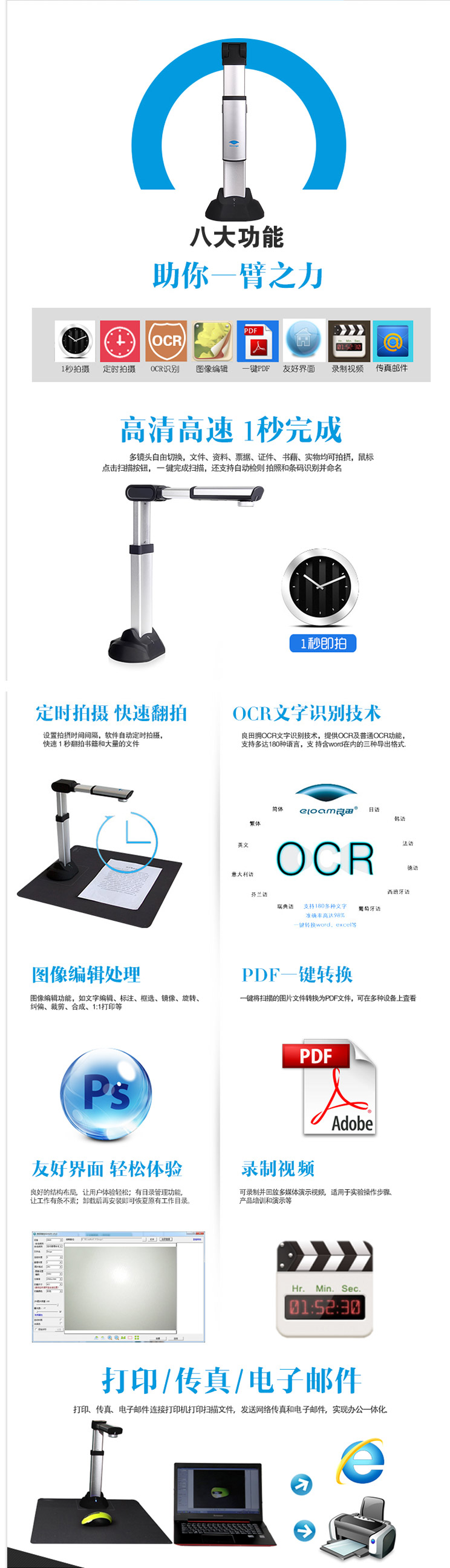 商品名称:★ eloam/良田 S1500A3AF A3幅面高拍仪 1秒/页 可扫描黑白/灰度/彩色 1500万像素 平台式