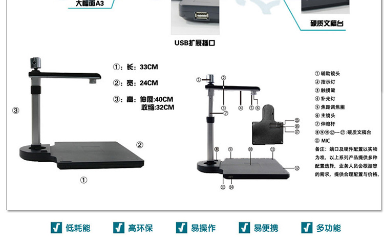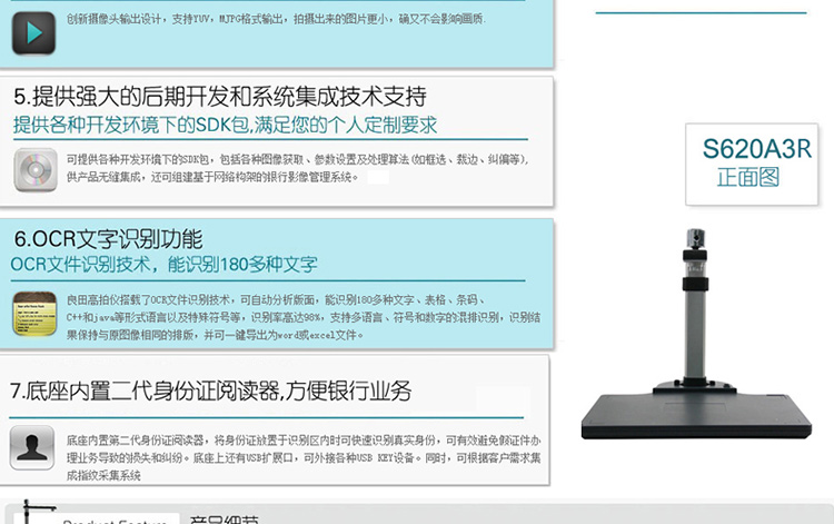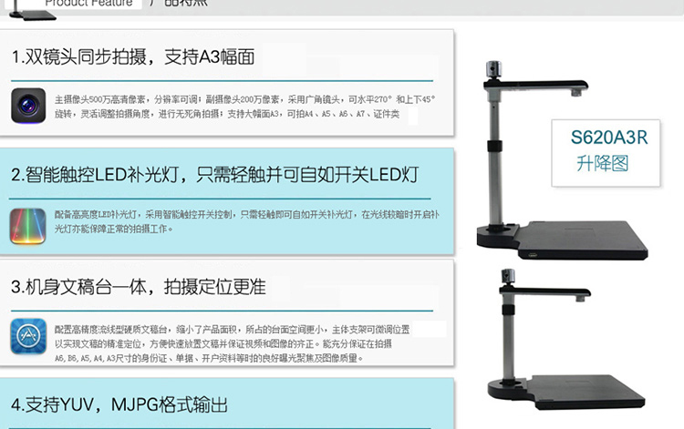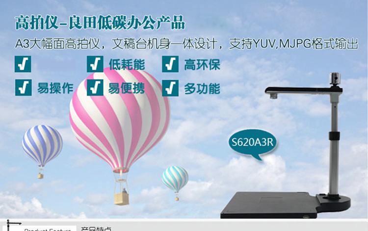 商品名称:★ eloam/良田 A3幅面高拍仪 1秒/页 可扫描黑白/灰度/彩色 500万像素 S620A3R