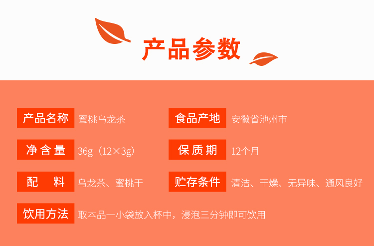 商品名称:天方 蜜桃白桃乌龙茶 36g