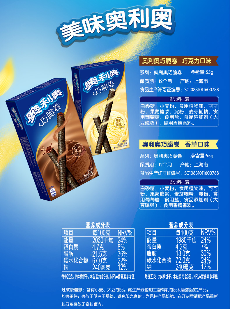 商品名称:奥利奥 夹心香草味蛋卷 55g