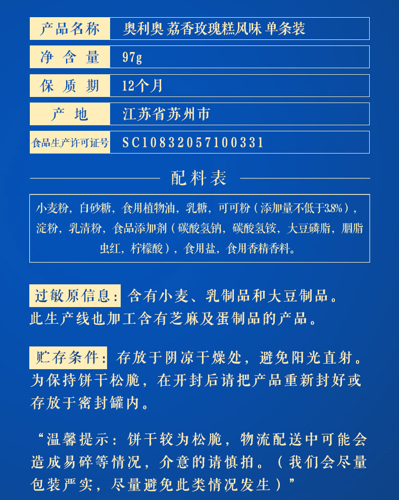 商品名称:奥利奥 夹心蜜制红豆酥味 97g