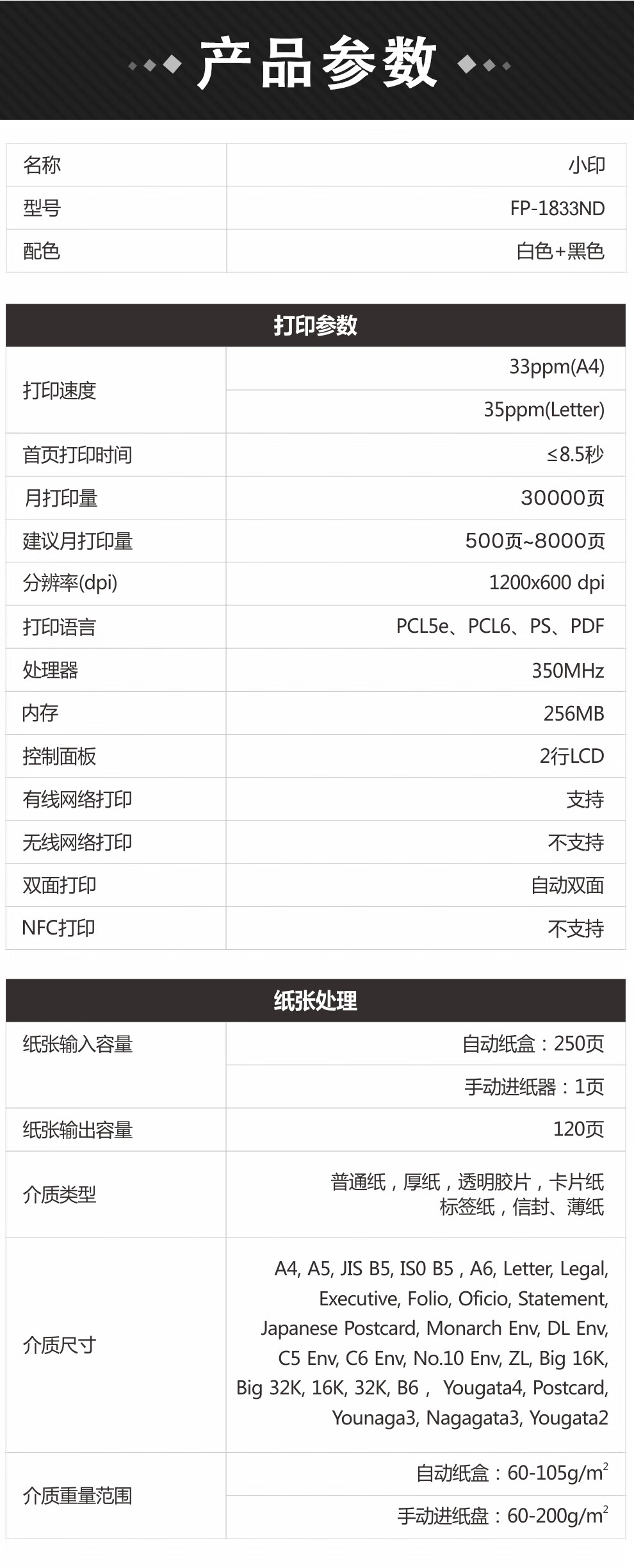 商品名称:★ 富可视 自动双面黑白激光打印机 FP-1833ND