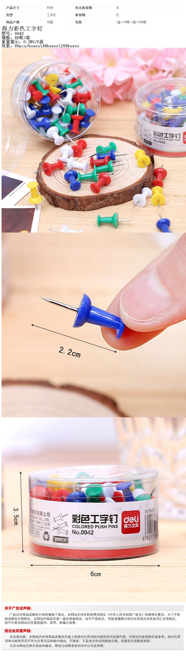 商品名称:得力 彩色工字钉 80枚 彩色 0042