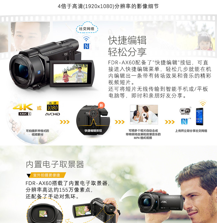 商品名称:★ 索尼/Sony 数码摄像机 FDR -AX60
