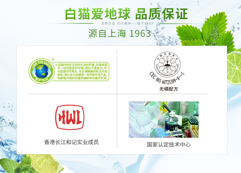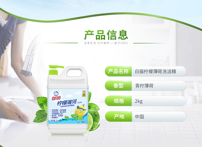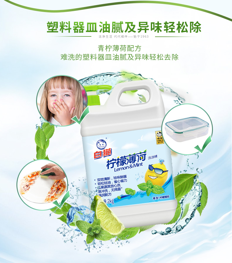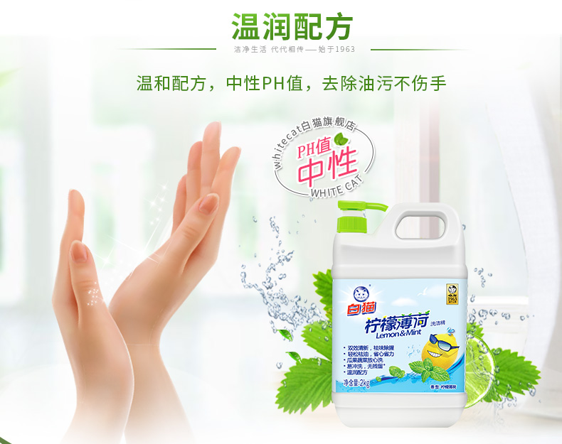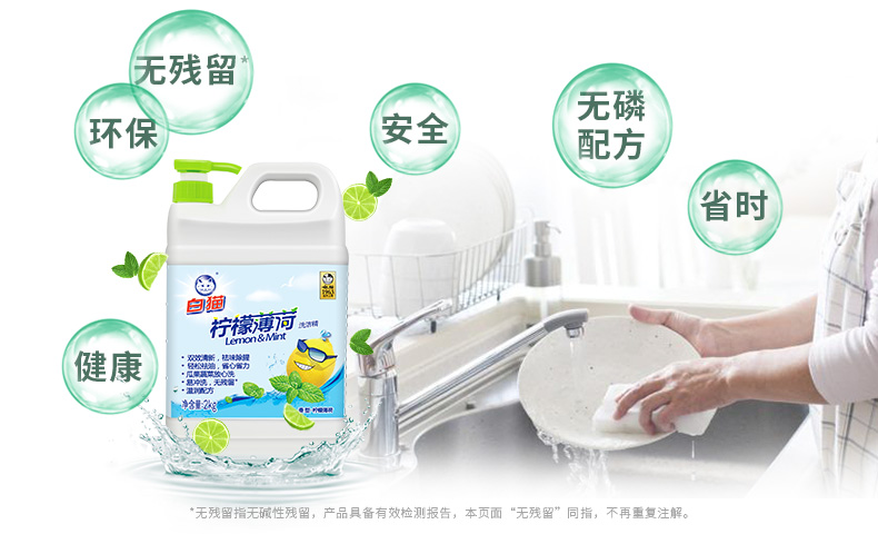 商品名称:白猫 柠檬薄荷洗洁精2kg