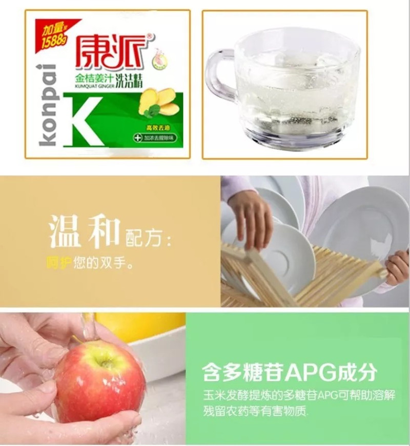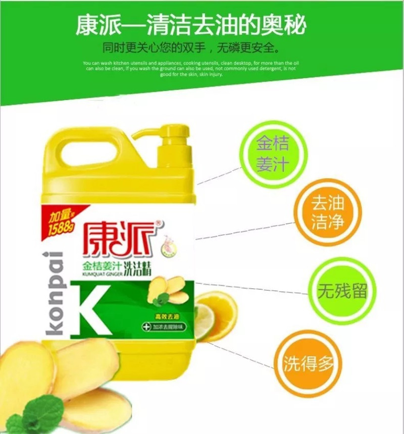 商品名称:康派 金桔姜汁洗洁精 1.588kg (桶)