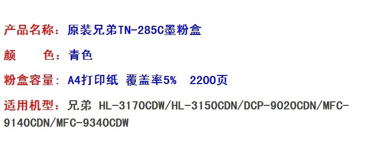商品名称:兄弟/Brother 青色粉盒 TN-285C
