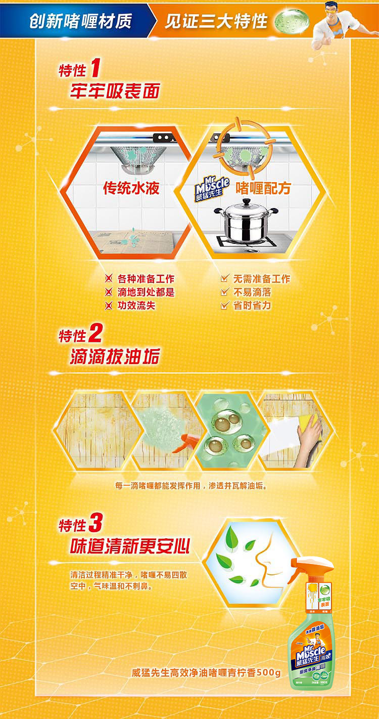 商品名称:威猛先生 高效净油啫哩 (青柠香)500g 厨房清洁剂 油烟机清洁剂
