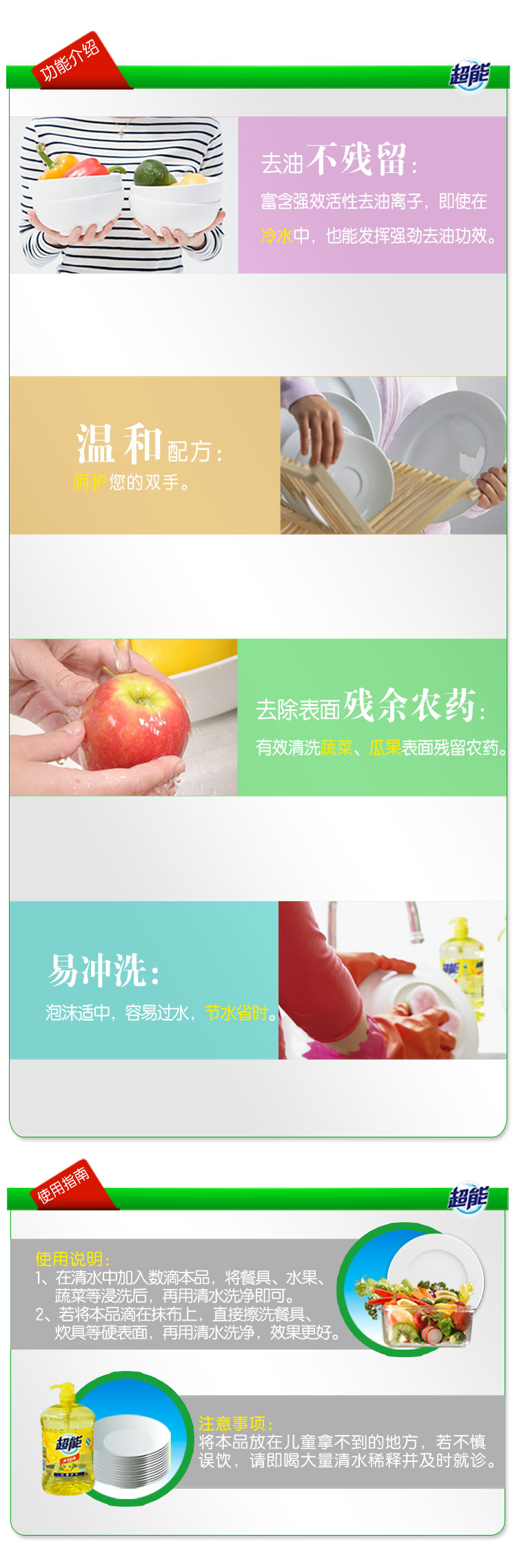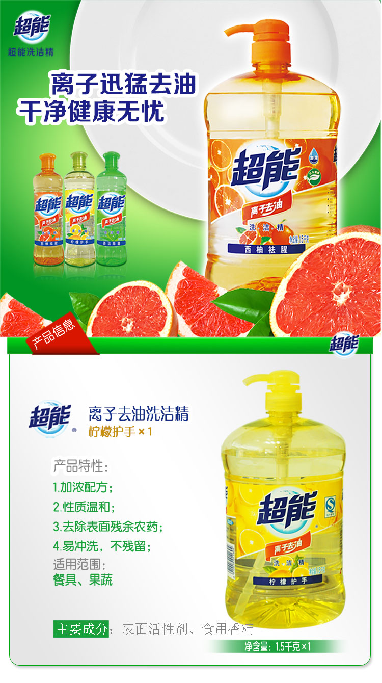 商品名称:超能 离子去油洗洁精(柠檬护手)1.5kg(新老包装随机发货)
