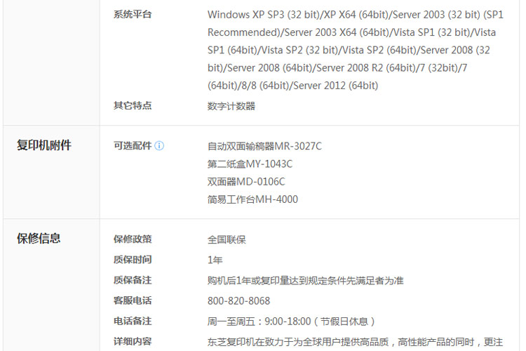 商品名称:☆东芝(TOSHIBA) 2309A (双面器/有线网络打印/350页) 复印机