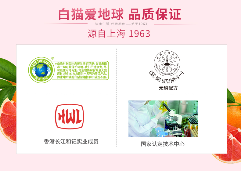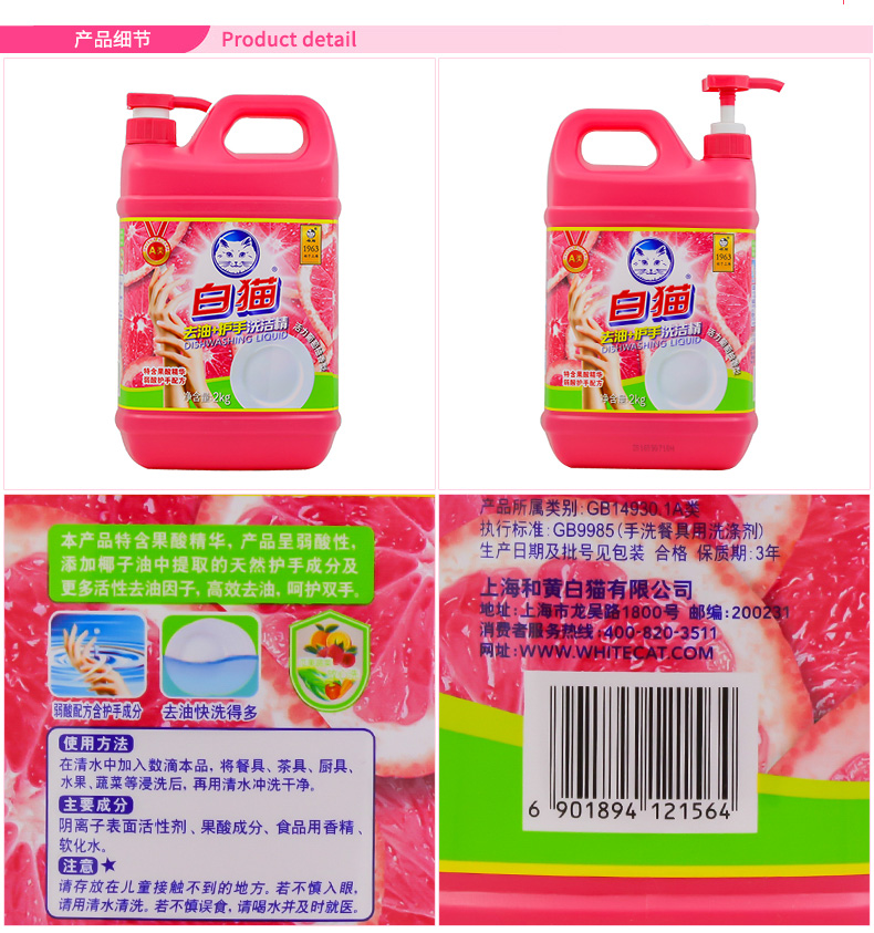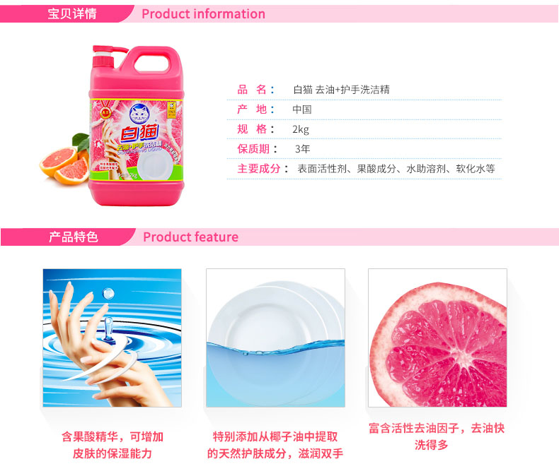 商品名称:白猫 去油+护手洗洁精2000g