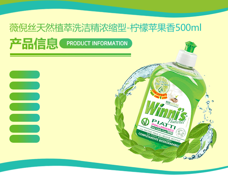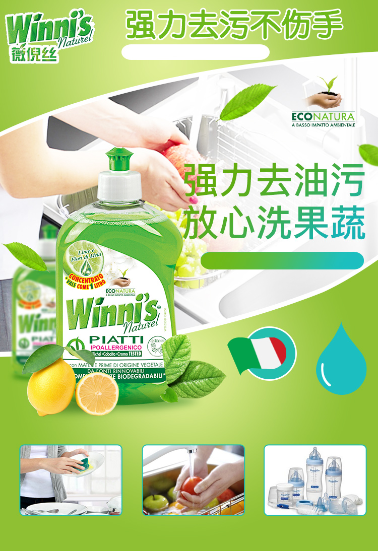 商品名称:薇倪丝/Winni's 浓缩洗洁精 500ml柠檬苹果香(意大利进口)