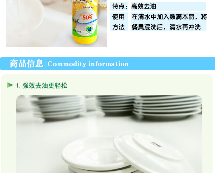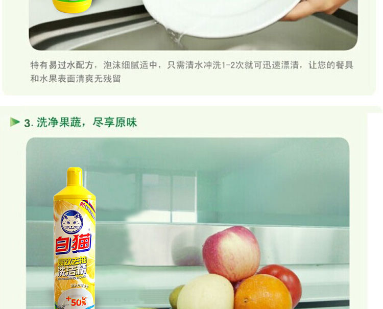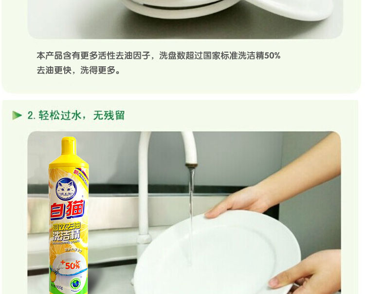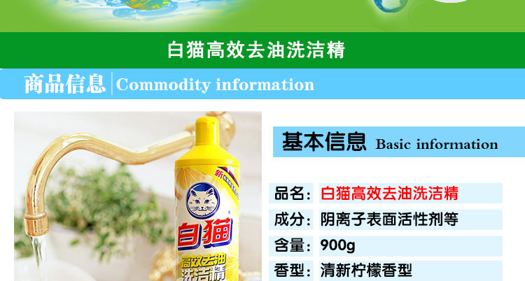 商品名称:白猫 高效去油洗洁精900G 洗洁精 黄色