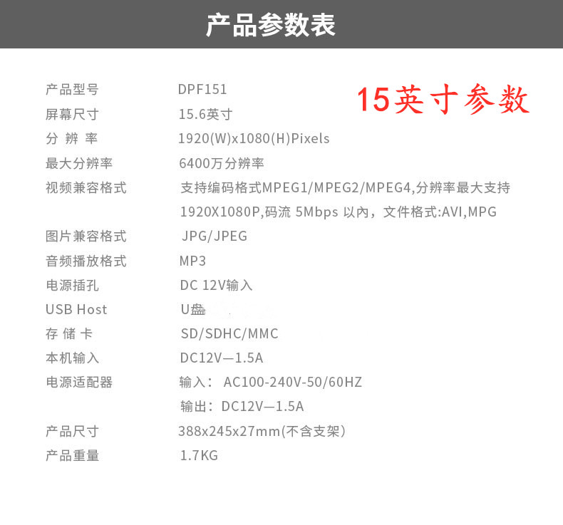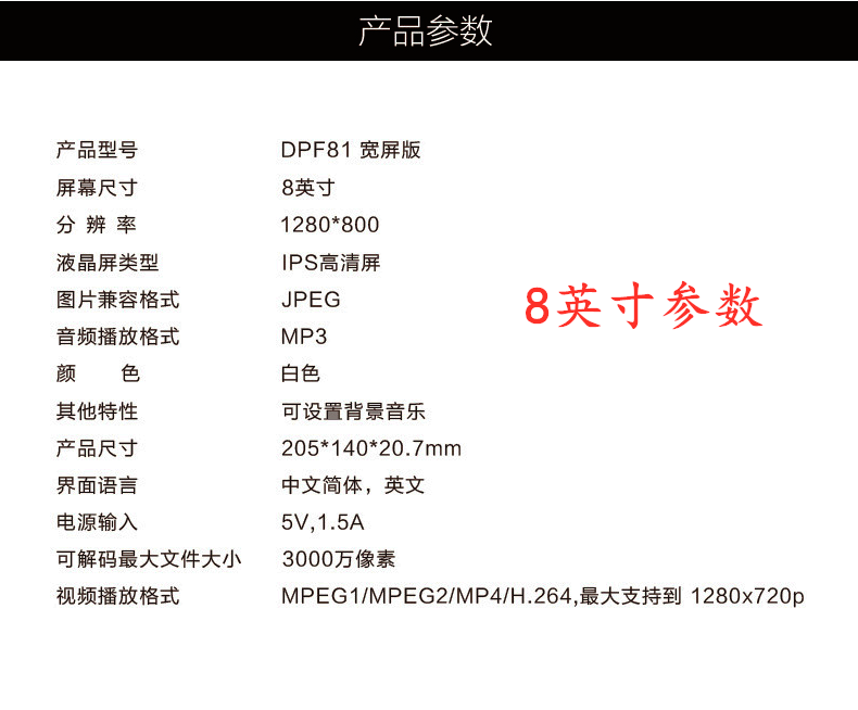 商品名称:爱国者 无内存版 数码相框 DPF101 白色