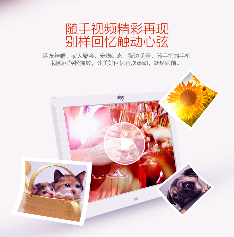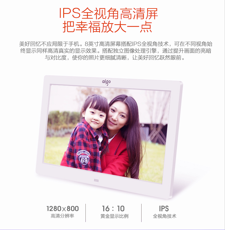爱国者 AIGO 数码相框DPF83 宽屏 8英寸高清电子相册 智能家居 支持视频音乐 SD卡/U盘直插 珍珠白