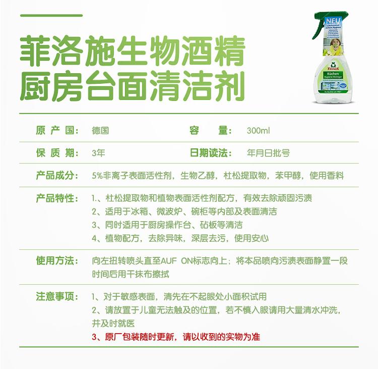 商品名称:Frosch/菲洛施 德国进口 厨房冰箱/微波炉多用清洁喷雾 300ml