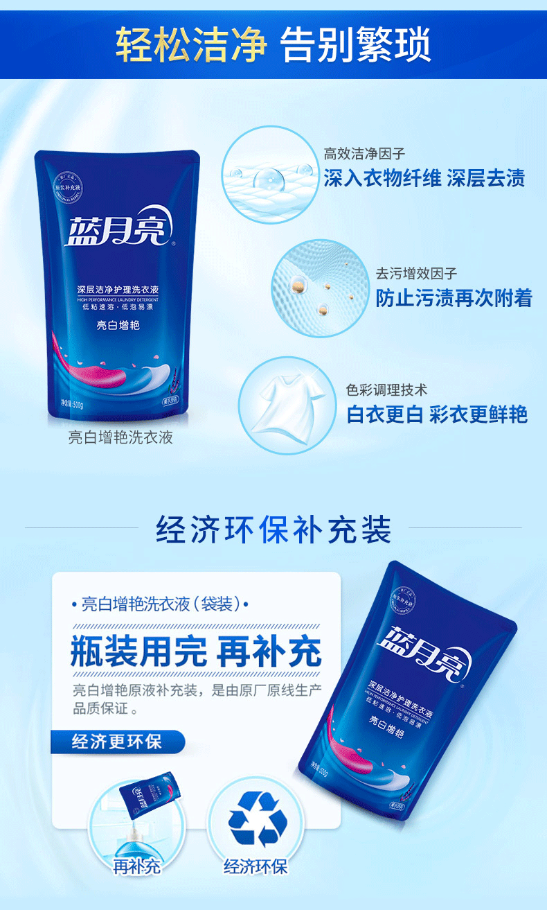商品名称:蓝月亮 深层洁净亮白增艳洗衣液自然清香 500g