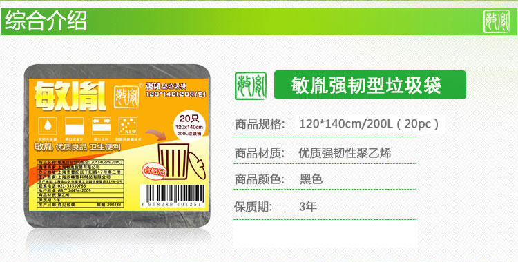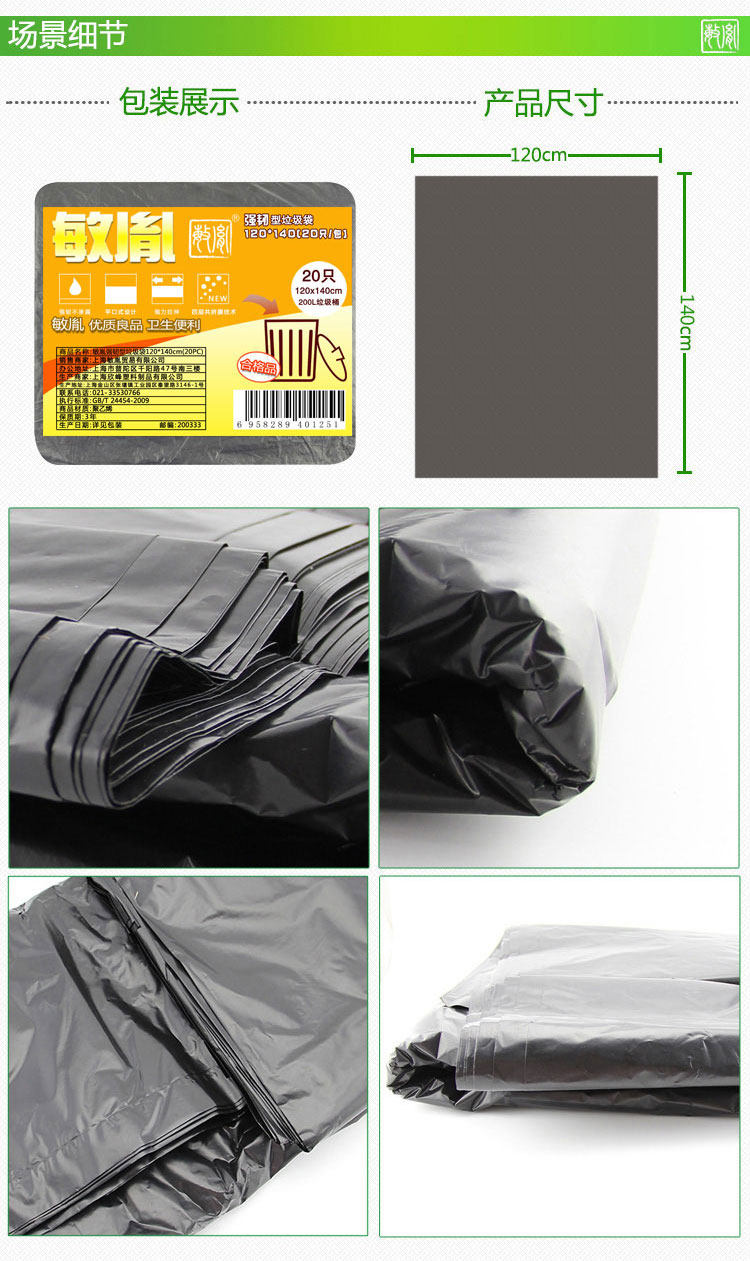 商品名称:敏胤 120*140cm 垃圾袋 20只/包